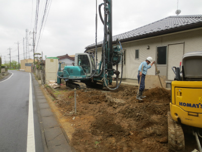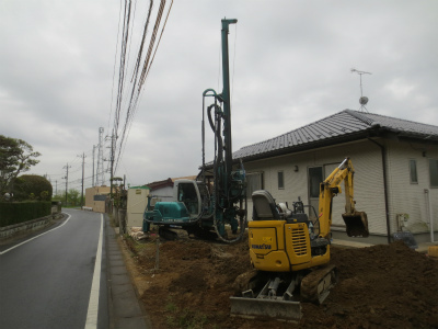 地盤調査の結果、地盤改良が必要という事で、地盤改良工事を