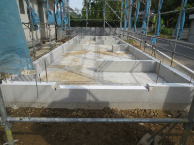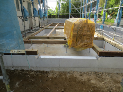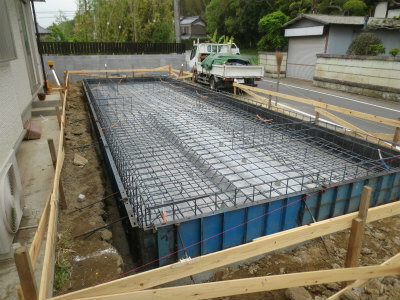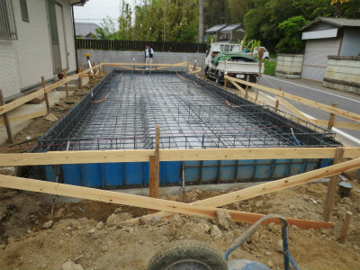あとは、コンクリートが十分固まるのをまって、型枠を外して、基礎工事完了です。