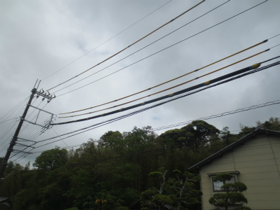 電線の防護状況です。電線が近接していた為、建てる前に