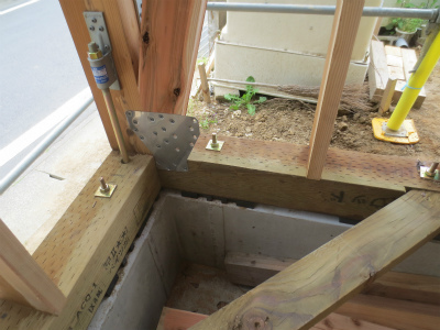 1階上部のホールダウン金物の取付状況です。プレカット