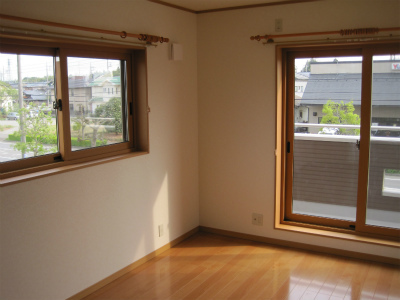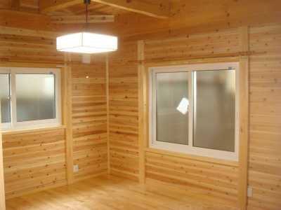寝室になります。部屋の壁は杉の羽目板を全体にはって、ログハウスのような雰囲気になっています。