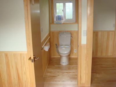 廊下には、手摺を設置し、部屋に入る入口はすべて引き戸としました。引き戸をただの片引き戸ではなく、2連引き戸とし、通常よりも開口を大きくし、ゆったり部屋に入れるしくみとしました。