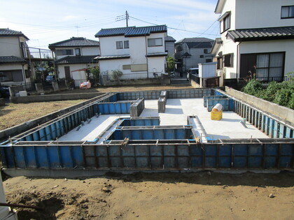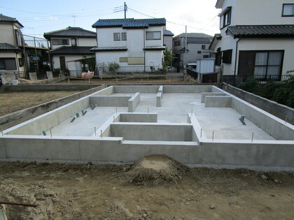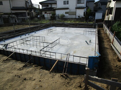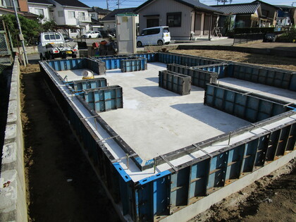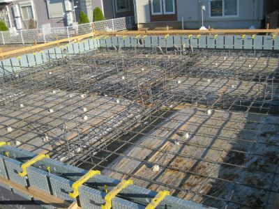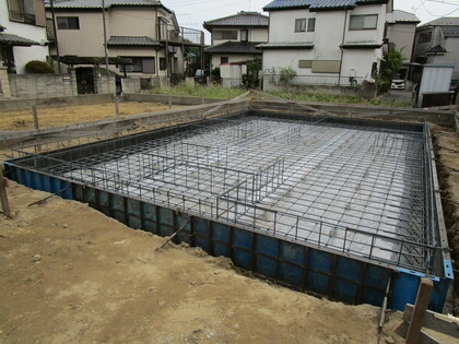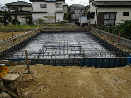 ]]>基礎の配筋状況です。立ち上りの型枠は、エアサイクル専用の断熱型枠のプラキソです。エアサイクルは基礎から断熱材を使用します。