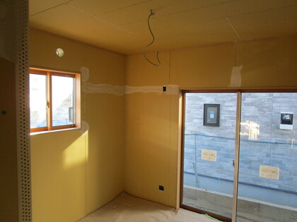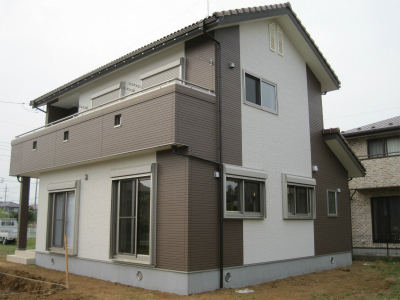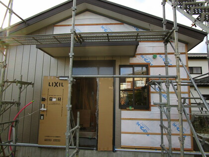 外壁サイディング施工途中です。サッシはエアサイクル専用の樹脂サッシでペアガラスとなっています。