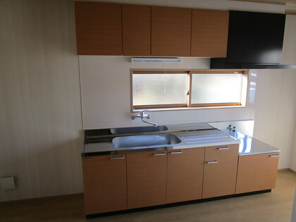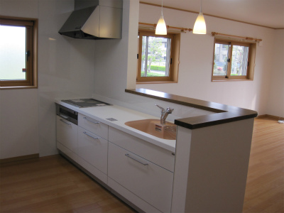 対面式のシステムキッチンになります。広々としたリビングが見渡せて、快適に料理の方も、できることと思います。