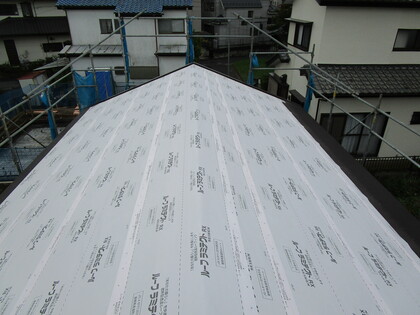 エアサイクル専用の屋根断熱材です。表面のアルミ拍は日射熱を反射し、小屋裏温度を抑制します。また、30mmのくぼみが通気層となり、棟換気で小屋裏の空気の排熱をします。