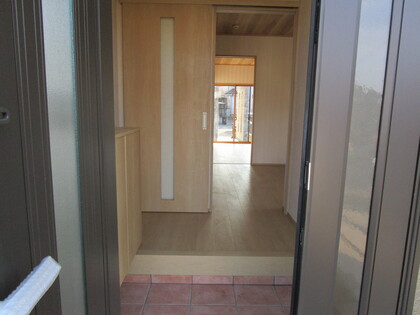 玄関入口です。お客様のご要望により段差を少なくしました。これなら車いすでも上がりやすくなっています。