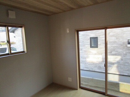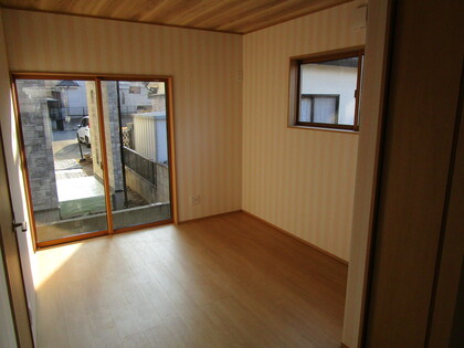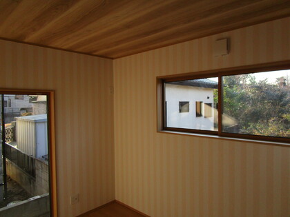 寝室になります。この部屋も、リビングと同じ仕上になります。檜の表情が、非常にお客様には満足していただいています。