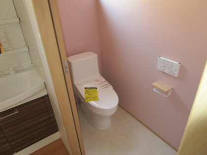 トイレになります。便器は、シンプルにタンクなしのパナソニックのアラウーノです。自動水洗や節水機能もあり、非常に優れた便器です。