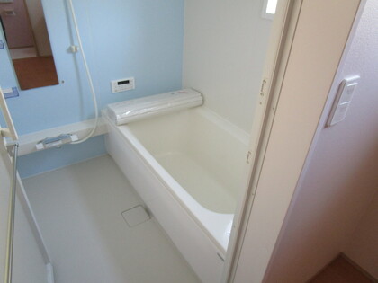 ユニットバスとなります。1.25坪タイプとし、通常よくある1坪タイプより、広めになります。また、30cmの出窓とし、窓の奥行をつくりました。