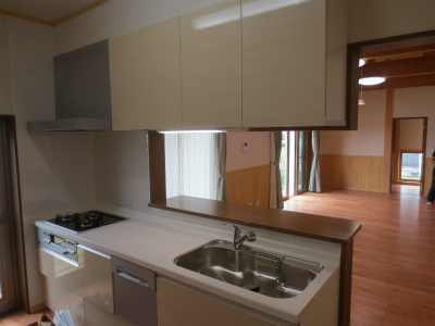 対面式のシステムキッチンになります。広々としたリビングが見渡せて、快適に料理の方も、できることと思います。