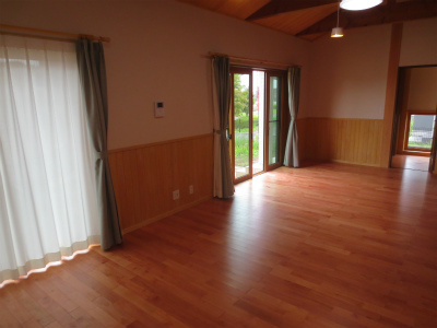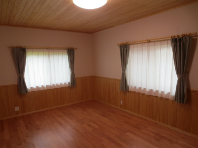 寝室になります。この部屋も、リビングと同じ仕上になります。檜の表情が、非常にお客様には満足していただいています。