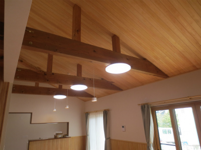 天井に檜の無節板をぜいたくに一枚一枚、丁寧に張っていきました。最高にぜいたくな空間となりました。