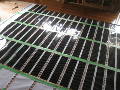 電気式床暖房施工状況です。この床暖は、プリマヴェーラというアルシステムの商品です。