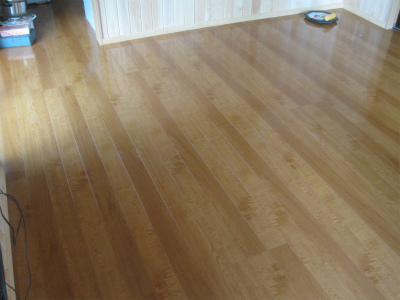 施工は非常に簡単で、写真のシートを合板下地の上に敷いて、その上にフローリングを