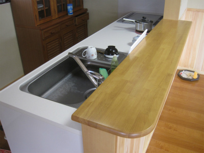 対面式のキッチンとして、30cm幅のカウンターを設けました。