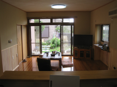 キッチンと居間がこの壁で仕切られていましたが、この壁をすべて撤去し、一つの部屋に