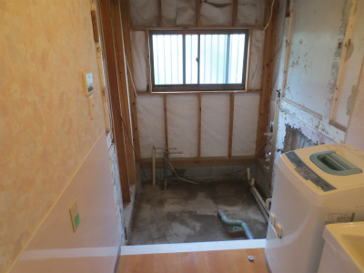 ユニットバスの解体が完了しました。これから水道配管等の工事を