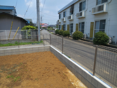 上の写真が現状敷地の状態です。この敷地外周部をブロック・フェンス